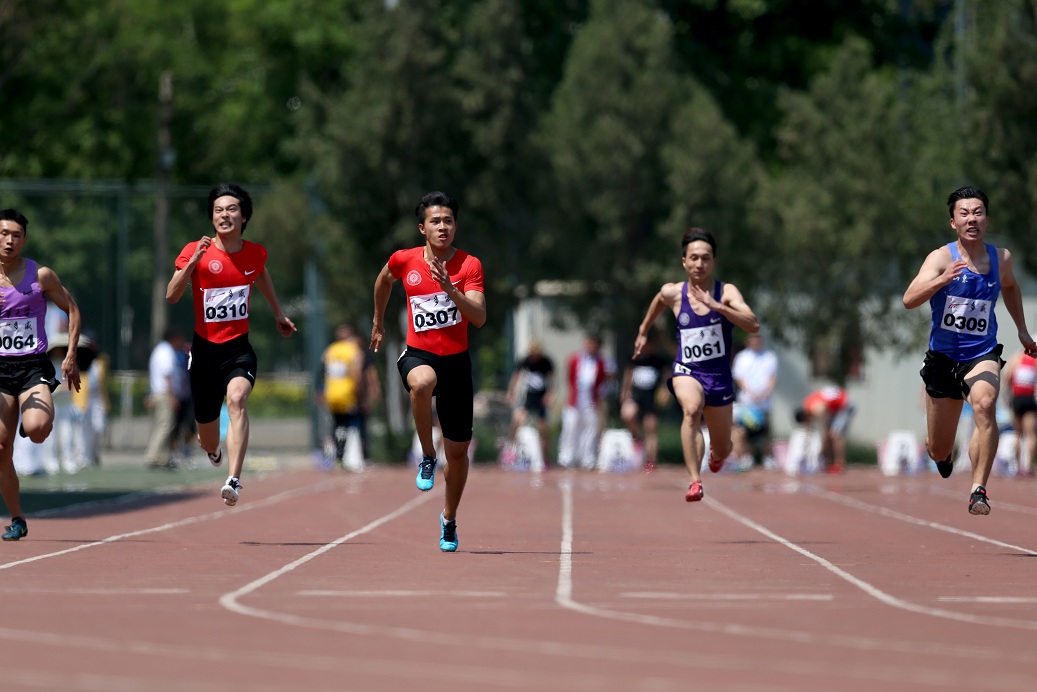 男子甲组100米决赛:来自北京大学的杨洋和张松分获冠亚军,成绩是10.44秒和10.65秒,第三名由来自北航的王康获得,成绩为10.80秒。